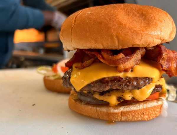 Single, Double, or Triple Cheeseburger dressed how you like with bacon added on top!
